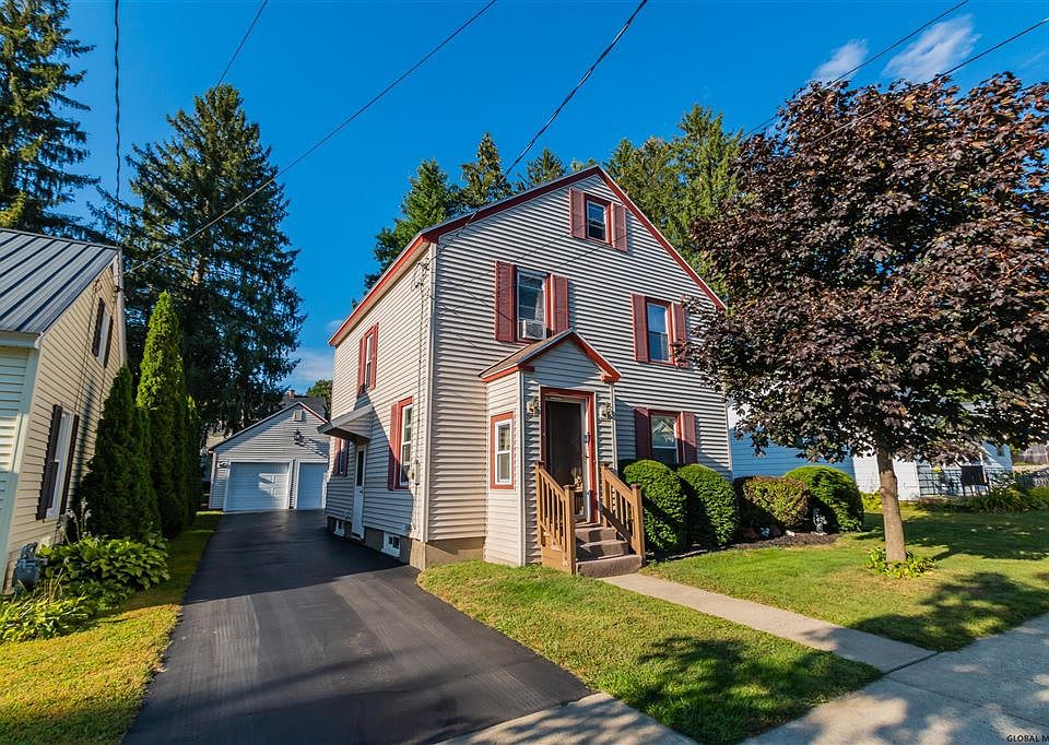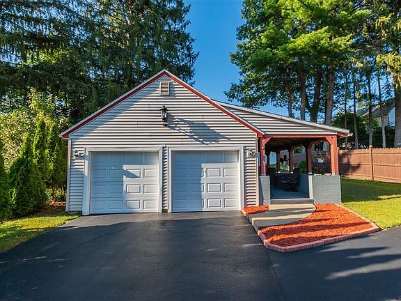 Meticulously maintained 3BR, 1.5BA home with many updates. Hardwood floors, carpet over hardwood in LR, bedrooms w/walk-in closets, built-in storage, new boiler in 2017, roof approx 3 yrs old, new windows and attic insulation in 2018, new HW heater in 2016. All appliances stay. Enclosed back porch, two car detached garage with two garage door openers which can be controlled with remotes or from wall control in the house, attached covered patio and a paved driveway. Approximate taxes are without exemptions. This home has a lot to offer and is move-in ready!