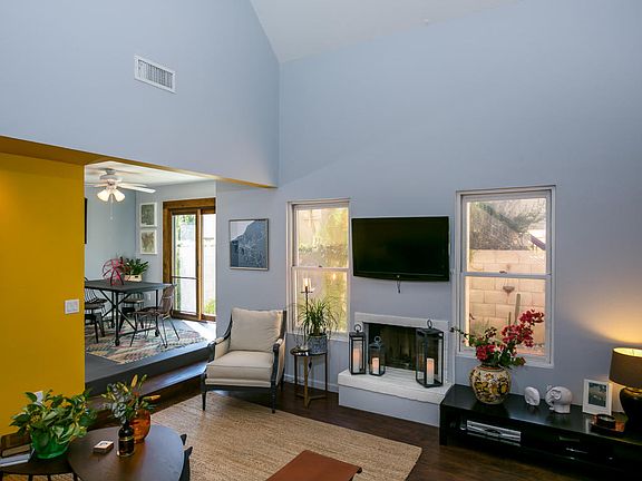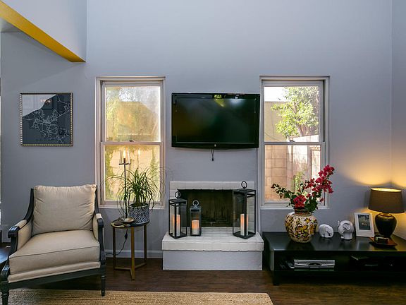 Spectacular Urban Living in this amazing townhouse w/Attached 2 car garage. Walk to great restaurants, Postino's, Federal Pizza, Windsor, Shops, Light Rail. Across from Medlock Historic Dist. You'll be dazzeled the minute you walk into this hard to find gem! Newer tile flooring, laminate wood flooring, built-in microwave & Refrigerator all new in 2015. 2 master bedrooms, each w/bath. Vaulted ceiling in living room w/ wood fireplace, formal dining room w/ custom sliding doors to beautiful zen-like patio garden, ceiling fans, alarm, Smart thermostat, stainless steel appliances & pantry in kitchen, walk-in master closet, dual sinks and separate toilet room in master bath, newer washer & dryer included. View of Camelback Mountain from master bedroom. Cox Cable included in HOA dues.