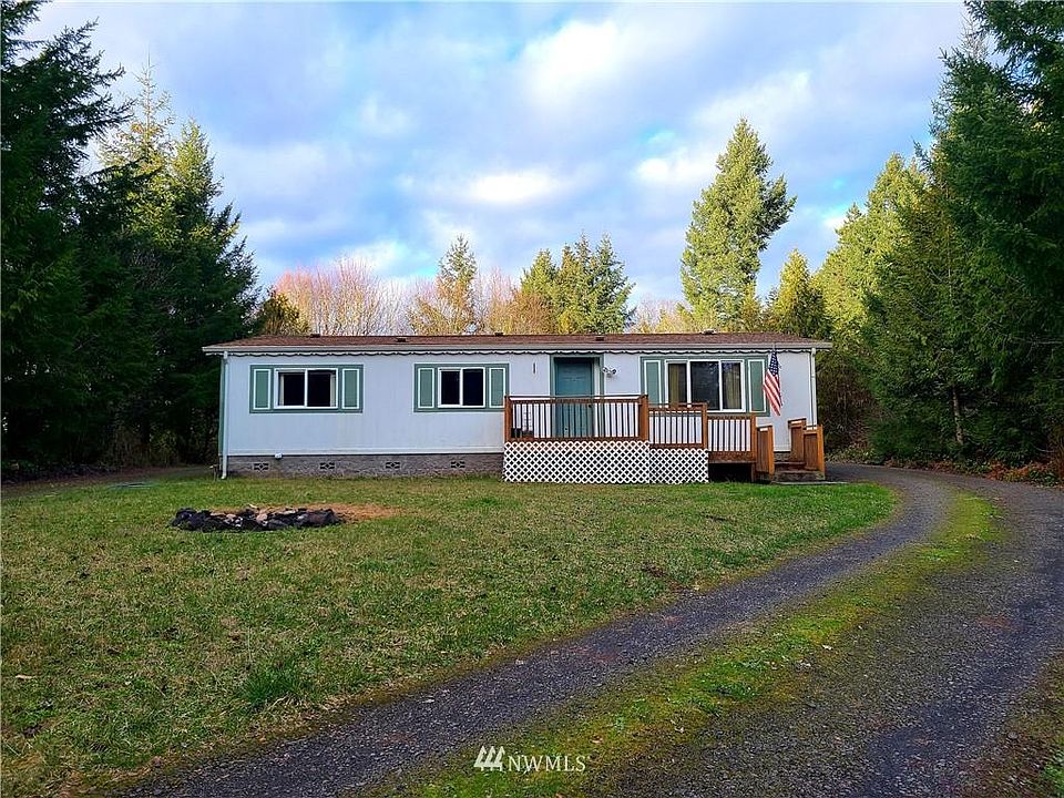 Investment opportunity! This 2 plus bedroom manufactured home features a den (can be used as a third bedroom) and 1.75 baths. Situated on a corner lot with nearly 3/4 of an acre. Open concept, vaulted ceilings, gorgeous hardwood floors and a spacious master/master bath with lots of storage. Plenty of room to roam in the large yard, trees for privacy and space for a garage or shop. Two plus car carport, circular driveway, RV parking, located just South of Shelton with super convenient access to Hwy 101 (only 15 minutes to Olympia!) and Lake Isabella State Park. Private well and septic- no city utility bills!