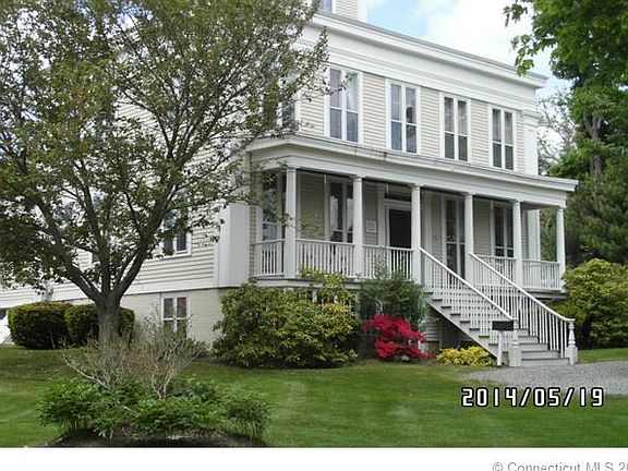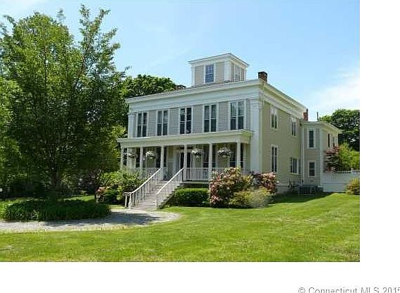 One of Mystic's classic "captain's houses", this Greek Revival home was built for Captain Peter Rowland, who set the speed record for sailing from San Francisco to New York on his clipper ship David Crockett in 1860. Renovated kitchen with S/S appliances (including oversized refrigerator and freezer) and skylights. 10' high ceilings, flexible floor plan on first, and possible in-law or au pair suite on second floor. Third floor is an enclosed widow's watch with water views. Many recent upgrades while preserving the character of the home. New roof, hot water heater, oil tank, renovated 2 story barn plus 2 car garage. Large windows make a bright sunny home, sited on a large corner lot within easy walk of downtown Mystic. Click the Virtual Tour link below and open the interactive floor plans to view pictures.