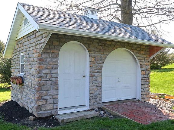 Lovely Ranch Style home, with hardwood floors, fresh paint throughout, updated kitchen, updated bathroom with luxury tiled bathtub, pellet stove fireplace, sharp stone exterior, covered patio, large stone shed, over-sized garage, finished basement, and spacious lot. Excellent move-in ready condition. Located in Willow Street.