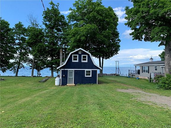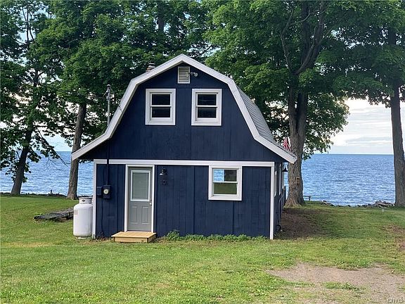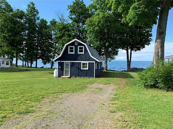 Adorable year round or seasonal home on Lake Ontario! 3 bedrooms up with 2 full baths. Great room with walls of windows, Sliders and back deck overlooking the water. Master bedroom upstairs has balcony. Galley like kitchen with plenty of cabinets! 2nd floor laundry! Public water! Such an affordable waterfront retreat! Get in and enjoy for the summer! **Neighbors property is 1/3 of boat launch... enough room for your boat on the 2/3 half! This Cottage / Home is Being sold AS IS.
