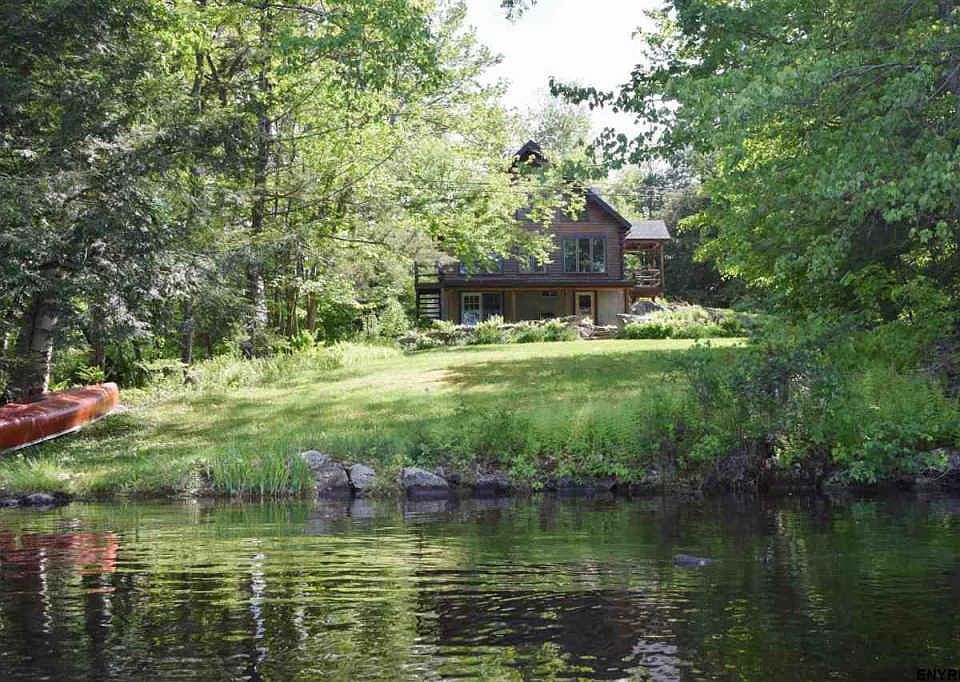 You will fall in love with this spectacular lakefront year-round home with 53 ft of direct lakefront on Dyken Pond, the largest lake (180 acres) on the Rensselaer Plateau offering great fishing, boating, and swimming! Bring your kayak, canoe, and motorboat, too! The Environmental Center offers over 6 miles of trails for hiking and snow shoeing in the winter! This property is only 22 miles to Albany & 17 miles to Troy. With this lakefront retreat just 3 hours to NYC, 1.5 hours to VT, 1 hour to Saratoga Springs & less than a half hour to MA, this home is perfect for year-round home or seasonal use. Built in 2003, this Moosehead Cedar Log Home features 1,222 AGSF, a wall of windows overlooking the lake, cathedral ceilings, an open floor plan & a full, walkout basement with 278 SF of finished space. The entryway features ceramic tile flooring and a coat closet. Pine flooring is throughout the main living areas and bedrooms. There?s a ceiling fan/light in the great room as well as a chandelier over the dining area. The kitchen features track lighting, oak cabinets, and a pantry closet. The GE appliances are included. The full bath on the main floor features ceramic tile, a fiberglass tub, and a single sink vanity. There are two generously sized bedrooms on the main floor both with overhead lighting, cordless shades, and double door closets. The spacious loft works perfectly as a family room or sleeping area and was designed so that it could easily be converted to an additional private bedroom; it offers pine flooring and a cathedral ceiling. Note: seller recalls there is plumbing in the wall for ease of adding an additional bathroom but does not know details. The full basement features a full bath w/ a fiberglass shower, single sink vanity, ceramic tile floor, and the laundry area. Bedroom 3 (or could be a family rm) features a closet, wood laminate flooring, and a French door to the covered flagstone patio overlooking the lake. Outside offers a covered side porch with a lake view, too. There?s plenty of off-street parking with parking areas on both the house side of Wachter Road (which is a 120 x 202 x 53 x 122 parcel) and on the parcel on the other side of Wachter Road (101 x 104 x 100 x 116); the total lot size is .59 acre. Additional home features include solid wood interior doors, propane hot air heat, a Bosch propane tankless water heater, drilled well, septic, 200 AMP electric, Spectrum TV/internet service, and Pella wood double pane windows. The unfinished portion of the basement has the mechanicals as well as a work bench area and a full 2nd door to the exterior.