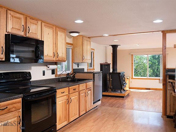 This comfortable property in Wheatland Meadows Subdivision has an open living space throughout the main level with living room, wood stove, kitchen, pantry, and master bedroom with 3/4 bathroom. The full-finished basement offers an additional living room area, full bathroom and 2 bedrooms with non-egress windows. One bedroom was used as an exercise room and includes a sauna. This property also has a RV hookup, a huge shop that is approximately 36'x46', another storage shed and free internet. Updates include new well pump, relay in pressure tank, dishwasher, water softener, reverse osmosis system, and hot water heater. Located just 2± miles from Wheat Montana Bakery & Deli, 28± miles from Belgrade/Bozeman Yellowstone International Airport and 36± miles from Bozeman.