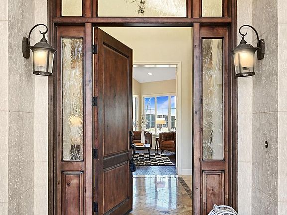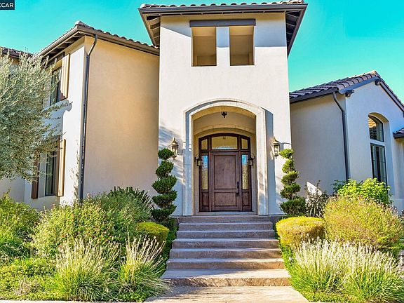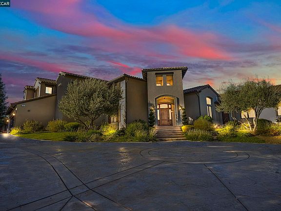 Spectacular Northgate custom-built estate with 6 bedrooms, 4.5 bathrooms, and over 5,200 sq. ft. of living space, located on 1.5+ acre lot, with stunning views of the valley and surrounding hills. This luxurious retreat has beautiful curb appeal and an impressive two-story entry foyer with stone & marble floors, skylights, and designer chandelier. Enjoy an open floor plan for entertaining, inviting living room with stone fireplace and elegant dining room with hardwood floors and crown molding. Fabulous gourmet kitchen with extensive cabinetry, granite counters, large island with walnut countertop, six burner stove & breakfast nook. The great room has a stone fireplace and sliding doors that open to a private patio with panoramic views. The main level includes: impressive primary bedroom suite, a second bedroom suite with kitchenette ideal for in-law/au pair setup, and a third bedroom/office/media room. The separate upstairs wing includes 3 bedrooms, 2 baths, and living area. The expansive grounds and backyard include stunning sunset views, covered patio, fireplace, lush landscaping, and bucolic pasture. With the owned solar panels, Tesla Powerwalls & car charger, this home uses renewable energy to meet its electricity needs. Fabulous desired neighborhood & top rated schools.