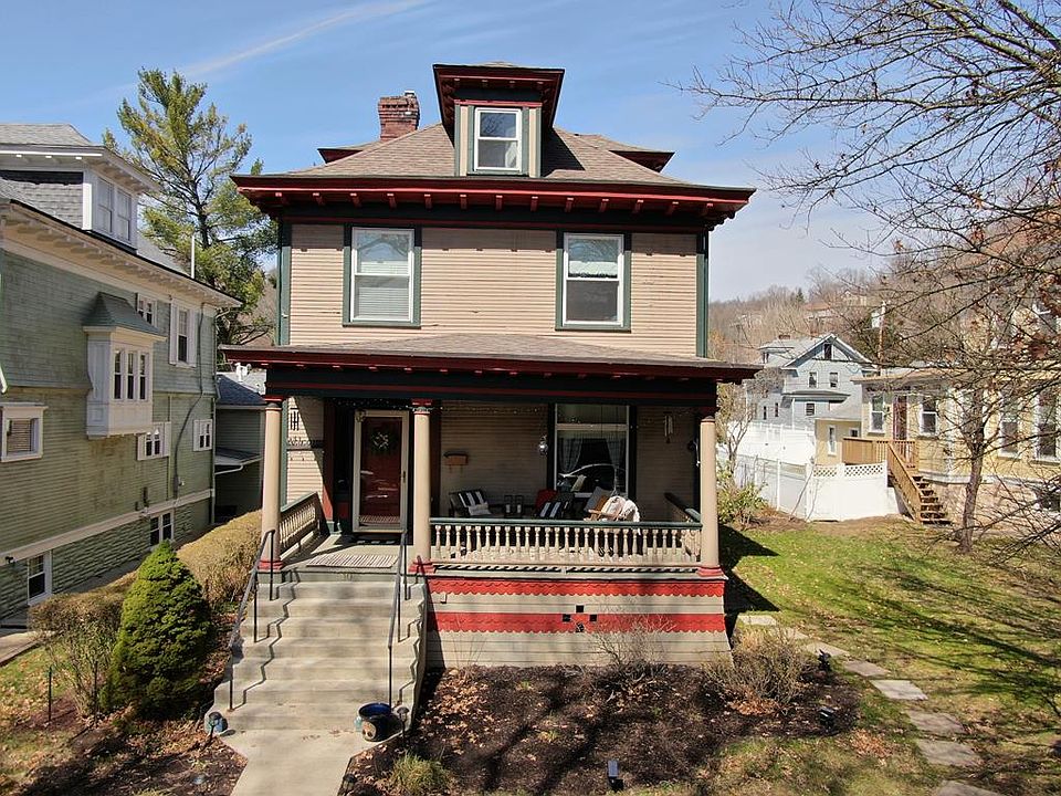 Great Woodsdale home, quiet tree lined streets, flat yard, and inviting front porch. First floor has Foyer with a fireplace, eat in kitchen/family room, full bath and dining room. Upstairs you'll find a Master bedroom with bath and walk-in closet, 2 more bedrooms and a full bath, 4th bedroom on the 3rd floor. Basement has rec room, laundry and storage.