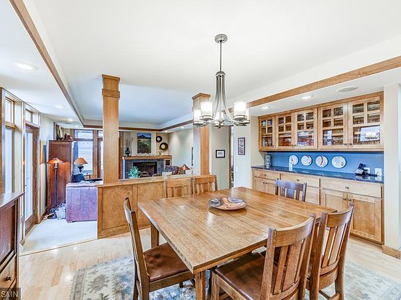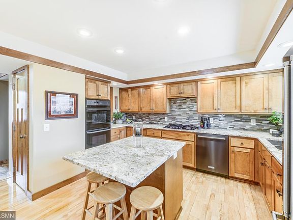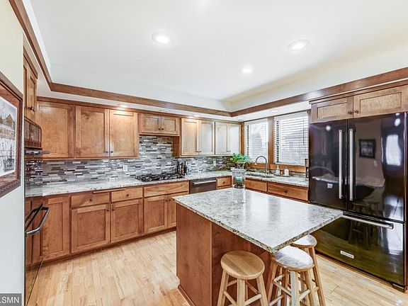 Architecture Inspired by Frank Lloyd Wright. This unique two story home is a one of a kind in the St Cloud Metro area. The curb appeal is exceptional with mostly brick construction and some stucco. The interior design is just as striking as the exterior. The kitchen is large with all of the amenities of an executive home. You will love the maple cabinetry, granite counter tops, gas cook top stove, double ovens and upgraded appliance package. The dining room is also spacious with a large buffet that has an upper glass hutch and walk out to the patio. There is a step down to the living room with a beautiful gas fireplace. Off the living room is a large screened porch. The upper level is amazing with 4 bedrooms. There is a spacious master suite with double closets and a private bath with air bubble bathtub and separate shower. Moving into the lower level you will find a large 15x38 family room that could be modified to facilitate a 5th bedroom. This is truly a remarkable home!