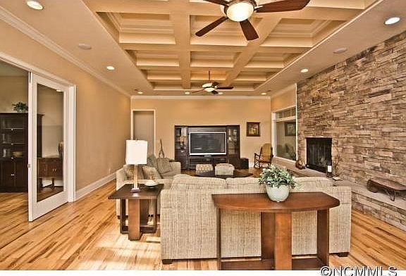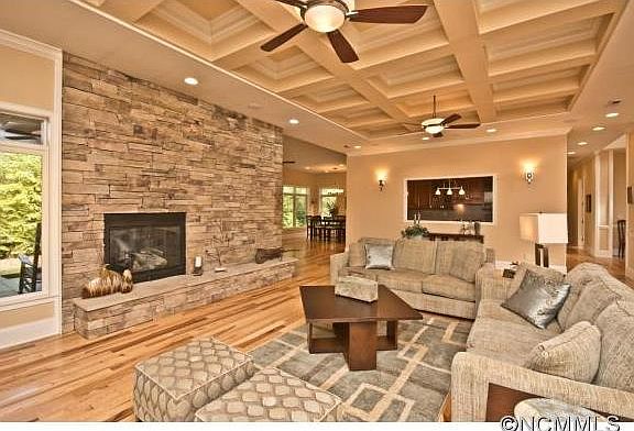 Fantastic Arts & Craft home! Dramatic Great Room with bold stack stone fireplace and 10' ceilings. One level living with gleaming hickory floors. Gourmet kitchen with granite counters and Thermadore appliances. Three car garage and mountain views!