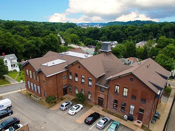 This building is a renovation of the old Emsworth School House and was designed by Gerald Lee Morosco, chair of the Frank Lloyd Wright Foundation. This is a two story modern condo on the 2nd floor of the building with a view of downtown Pittsburgh in the distance. Close to shopping, fitness and the Avonworth Community Park.