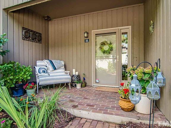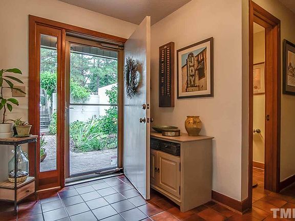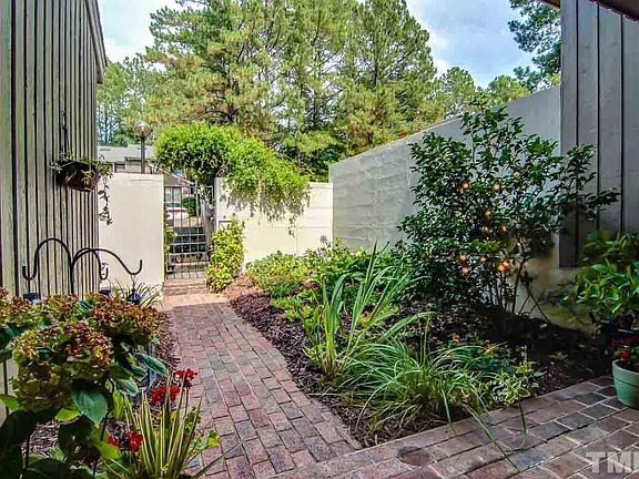 Beautiful enclosed&private courtyard has brick pavers,stucco walls and established,flourishing planting beds.Laminate flooring stretches through DR&LR to the patio. 9'ceilings add to sense of space&light. Raised hearth FP. Floor to ceiling doors allow a splendid view to private deck. Passthrough from DR to kitchen connects. Counters and fixtures in the kitchen have been upgraded. Tile floors in foyer,kitchen,half bath. MasterBR is generously sized and Master Bath has been updated with tile and flooring.