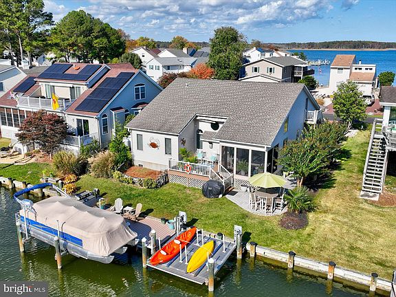 Welcome to 10 Waters Edge, a stunning waterfront residence in the highly desirable Ocean Pines community along Maryland’s beautiful Eastern Shore. This sought-after enclave spans nine miles of waterfront and lush woodlands, offering an impressive array of amenities, including a yacht club, a championship golf course, 5 swimming pools, aquatic classes, scenic nature trails and much more. With 60 feet of full bulkheaded, deep-water frontage, this remarkable home provides direct canal access to Isle of Wight and Assawoman Bay, making it a dream for boating enthusiasts. The curb appeal is unmatched, with meticulous landscaping and a welcoming covered entrance inviting you to explore all this exquisite home has to offer. Step inside to find a seamless blend of contemporary architecture and coastal charm, thoughtfully designed to capture the essence of waterfront living. Natural light illuminates each space, drawing you to the living room with its soaring vaulted ceiling and expansive picture windows framing serene water views. Anchored by a beautifully appointed fireplace, the living room is an inviting space for gatherings with family and friends. The grand pass-through to the kitchen and dining area enhances the spacious feel of the home, creating an entertainer’s dream. The gourmet kitchen is a chef’s delight, equipped with extensive granite countertops and ample prep space, perfect for culinary creations. Enjoy meals in the adjacent dining area, on the screened porch with panoramic water views, or step out to the elevated deck to dine alfresco, taking full advantage of the coastal setting. Retreat to the serene primary suite, a sunlit haven featuring a generous walk-in closet and an ensuite spa-inspired bath with a soaking tub, stall shower, and dual vanities. On the main level two guest bedrooms, a well-appointed hall bath, and spacious laundry room complete the 1st floor layout. Upstairs, a charming loft space offers versatile options such as a family room or potential fourth bedroom, complemented by two large walk-in storage areas and additional attic space above the garage. This exceptional residence also offers an expansive outdoor living experience, complete with multiple gathering areas, a private dock, a boat lift, and a double galvanized jet ski/kayak lift. Embrace coastal living at its finest at 10 Waters Edge. Schedule your private tour today to discover this incredible waterfront retreat! The Ocean Pines resort community offers an impressive array of amenities that include, a championship golf course, scenic nature trails, five pools with aquatics programs, beachfront restaurant in Ocean City, yacht and beach clubs, marinas, a premier racquet sports complex, community activities throughout the year, farmers & artisans’ markets, gift shop and so much more.
