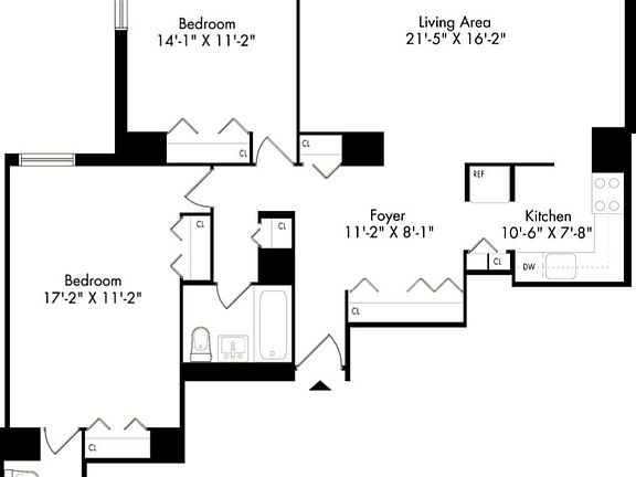 Two bedroom two bath apartment, easily converts to three bedroom. With master en suite bath, classic kitchen, lots of storage space, and mid floor north/west views to the plaza, city, and river. 1013 sq ft. Avail now.Two-acred landscaped plaza w/ river and city views, year-round activities schedule, playgrounds, on-site preschool, free Wi-Fi, sundeck, restaurant/lounge on site, groceries, banking, dry cleaning, shopping on-site