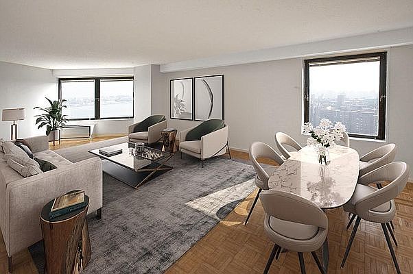 One bedroom, one bath apartment, will flex to two bedroom with approved room divider. Offering new kitchen with maple cabinets, granite counters and stainless steel appliances, ample storage space, and northest/east views to the river and Queens. 731 sq ft. Available 10/12.Currently offering one month free. The rent shown is the Net Effective Rent, with 1 month free on a 12 month lease, given at the beginning of Lease. Tenant will pay the Gross Rent for the remaining months. Two-acred landscaped plaza w/ river and city views, year-round activities schedule, playgrounds, on-site preschool, free Wi-Fi, sundeck, restaurant/lounge on site, groceries, banking, dry cleaning, shopping on-site