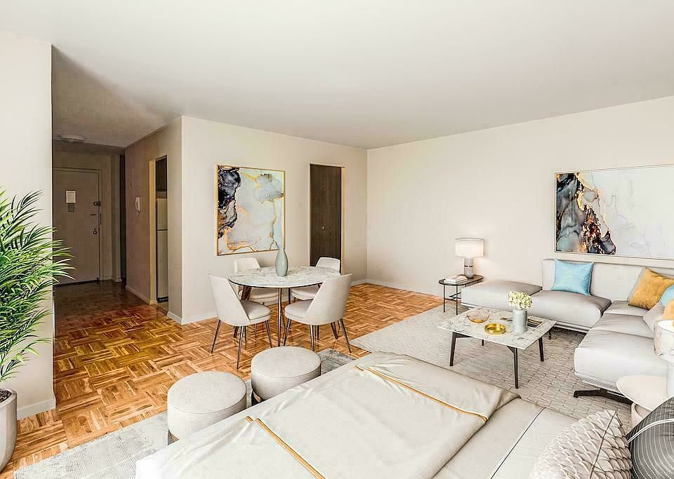 Low floor studio apartment with lots of storage space, private dressing area, classic kitchen, and west views to the city. 497 sq ft. Available 6/7The rent shown is the Net Effective Rent, with 3 (or 2) months free on a 12 month lease, given at the beginning of Lease. Tenant will pay the Gross Rent for the remaining months.Two-acred landscaped plaza w/ river and city views, year-round activities schedule, playgrounds, on-site preschool, free Wi-Fi, sundeck, restaurant/lounge on site, groceries, banking, dry cleaning, shopping on-site