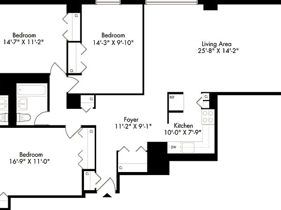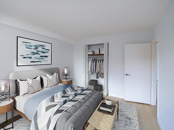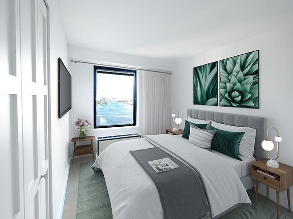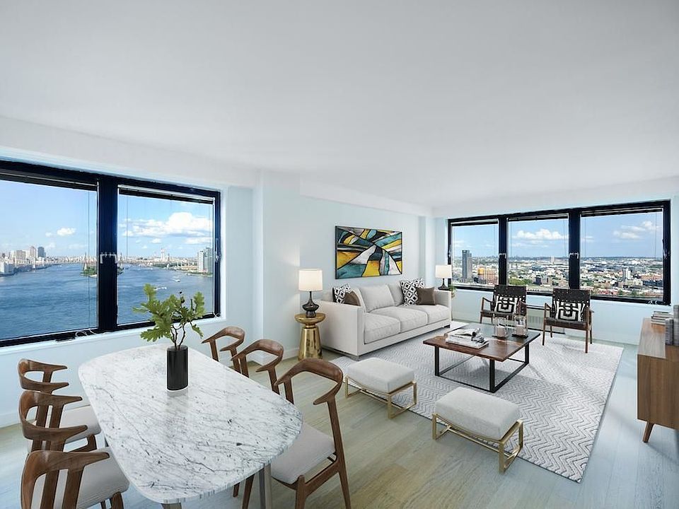 High floor three bedroom two bath apartment featuring a floor to ceiling renovation by Whitehall Interiors. Quartz counters and full backsplash with top of the line appliances in the kitchen, master en suite bath, ample closet space, and desert oak flooring throughout. East/north/west views to the river and city. 1158 sq ft. Available 4/12.Two-acred landscaped plaza w/ river and city views, year-round activities schedule, playgrounds, on-site preschool, free Wi-Fi, sundeck, restaurant/lounge on site, groceries, banking, dry cleaning, shopping on-site