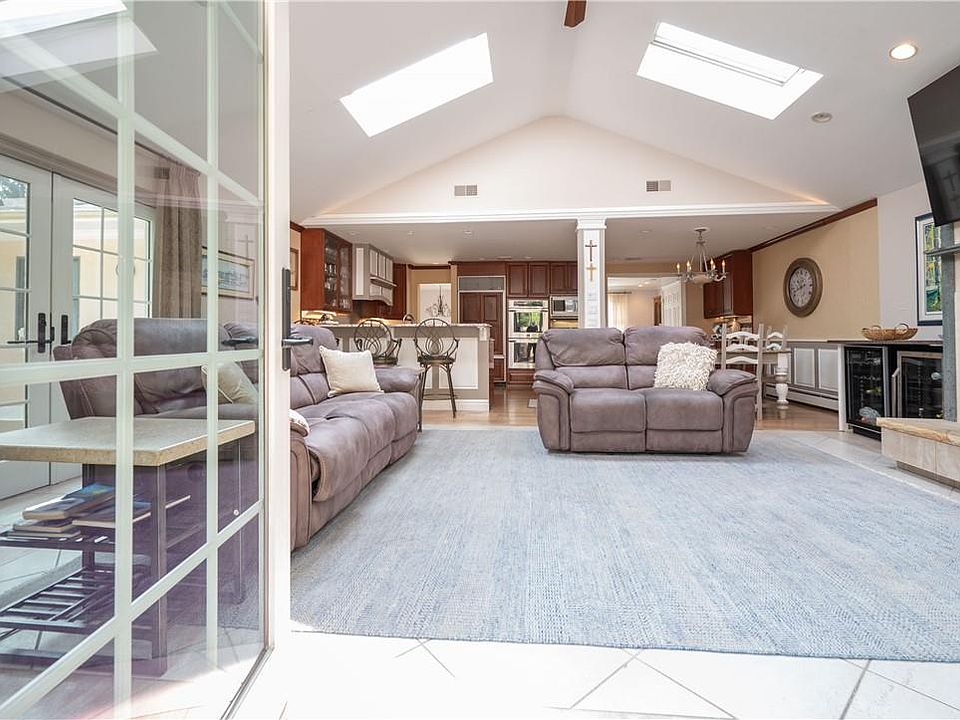 This exquisite raised ranch offers a harmonious blend of modern updates and classic charm. This home has a bright open concept floor plan with a beautifully done kitchen, dining and living room area, perfect for entertaining! The updated kitchen is the heart of the home, complete with top of the line appliances, custom refrigerator, bar top countertop for additional seating, separate island with sink and gorgeous countertops. The bathrooms are complete with heated floors, steam shower and jacuzzi. As you walk outside, you are welcomed with multiple entertaining areas with a built in grill, outdoor refrigerator and sink- a grillers dream! The large shed in the backyard offers extra storage or use as a workspace. Additional highlights include cathedral ceilings with 4 skylights, freshly painted interior and 2-car attached garage. With its blend of thoughtful updates and comfortable living spaces, this home is ready to offer a delightful living experience! Additional Information: HeatingFuel:Oil Above Ground,ParkingFeatures:2 Car Attached,