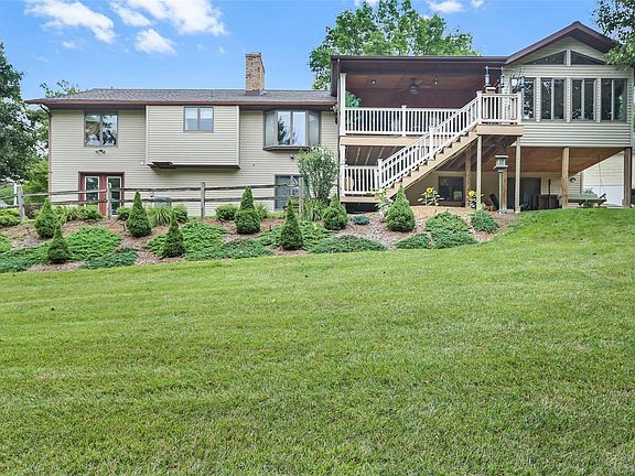 This beautiful ranch home sits in a manicured lawn, park-like setting w/mature trees, reaching down to the creek on 1.69+/-ACRES in the city limits, rare to find. Step inside could be your dream home, the concept design intends to create nice flow throughout. Whether you're looking for a serene retreat or the perfect place to entertain this home is it. The home features on the main level large foyer adjoining to separate dining/office rm w/wood floors, great rm w/gas fireplace, bay windows, built in shelves, vaulted ceiling w/wood beams. Kitchen w/backsplash, granite counter tops, planning desk, breakfast bar & breakfast rm. Laundry/1/2 ba. Splendid 4 season sunroom that leads out to a covered deck. Primary bedroom suite w/walk-in closet, soaking tub/separate shower. 2 add'l bedrm & hall ba. W/O lower level offers family room w/wood burning fireplace, kitchenette, full bath & bedrm. 2 Storage areas one w/service door great to store lawn equipment/workshop. Subd pool option plan w/fee.