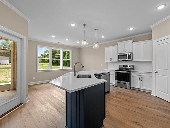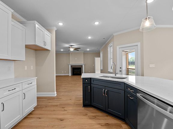 USDA Eligible! CUSTOM BUILT RANCH PLAN! Partial Backyard Vinyl Privacy Fence! Luxury HWD Style Flooring & Crown Molding Thru Main Living! Kitchen: Granite CTops, Cstm White Painted Cbnts, 3x12 Herrigbone Laid White Gloss Tile Backsplash, Cstm Painted Angled Island w/Flush Breakfast Bar, SS Appls Incl Smooth Top Range & Corner Walk in Pantry! Open to Family Dining w/Triple Window Overlooking Backyard! Owner'sSuite: w/Plush Carpet! Owner'sBath: 12x24 Tile Flooring, Cstm Painted Cbnts, Dual Vanity, 12x24 Matte Tile Srrnd Shower w/Bench & Double Niche & WIC! FamRoom: Cstm Surround Gas Log Fireplace w/Mantle & Crown Molding! 2-Car Garage w/Work Area!