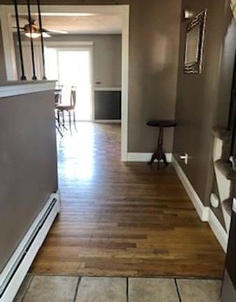 Handsome colonial located on a corner lot in a tucked away well-established neighborhood. This five rooms three bedrooms one and half baths and a partially finished basement home offers the fortunate buyer a hardwood floor living room with a beautiful raised hearth wood burning fireplace, an ample kitchen space with lots of cabinets, marble countertops and stainless steal appliances. The great size dining area opens up to a huge maintenance free trix deck and a immense fenced-in back yard that will accommodate any outside family and friends activities.