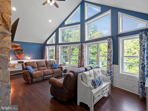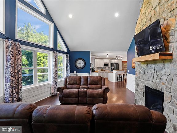 Short term rental possibilities! Priced under tax assessment. Charming, custom-built A-frame chalet, meticulously maintained and constructed in 2017, is nestled on over 7 private acres at the base of the mountain in scenic Linden, VA is waiting for you. The property boasts impressive stone retaining walls, multiple inviting patios, and a cozy fire pit, creating an ideal outdoor oasis. The upper level features a primary suite with its own private entrance to deck and an ensuite bathroom. The finished basement offers additional living space, including a bonus bedroom and bathroom with clawfoot tub. A convenient two-car garage provides ample parking and storage. Perfectly situated for easy access, it's located directly off a state-maintained road, ensuring year-round convenience. Additionally, an oversized 20 x 12 workshop or storage building provides ample space for hobbies, equipment, or future expansion. Front facing windows have UV film tint to keep the home cooler in summer. Wine enthusiasts will delight in its proximity to acclaimed wineries like Rappahannock Cellars, Capstone Vineyards, Linden Vineyards, and Fox Meadow Winery. Fresh produce a mile away at The Giving Tree.