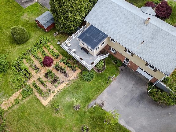 Highest and best offers due Tues May 21 at 10A.*** Larger than it looks! Adorable Easthampton 3 bedroom/2 bath home + additional lower level rooms and garden space, close to the bike path. Hardwood floors throughout the main rooms on first floor! Living rm w/ new picture window & fireplace. Dining room is open to the updated kitchen and has access to the bright sunroom, too. Thoughtful kitchen w/ Birdseye maple cabinets, new cooktop, double wall oven, dishwasher, & breakfast bar. Large primary bedroom overlooks spacious backyard. Two additional bedrooms on this level, and a full bath with tub/shower, tile flooring & upgraded vanity. Step out onto the composite rear deck with custom lighting - great for quiet evenings or morning coffee. Flexible finished lower level walkout offers tile flooring, two finished rooms, mudroom/ laundry area, tiled bathroom, & utility area. 1- car garage. Buderus boiler, garden space and plantings include: blackberries, plums, pears, perennials and more!