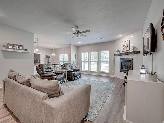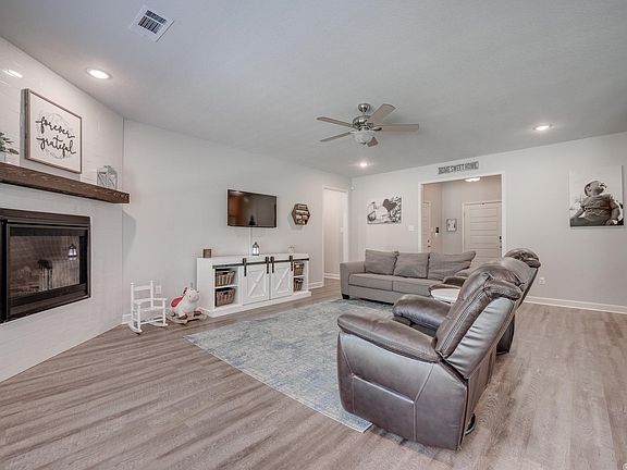 This Home is a MUST SEE !!! Beautiful kitchen with large granite bar, Pantry, open floor plan, large living room with Fire Place, Laundry has cabinets, Master bath has double sinks with granite, his and her closets, private back yard with over sized patio, garage has a storm cellar, this home is move in ready with all the updated colors. Come check it out.