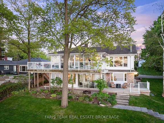 Top 5 Reasons You Will Love This Home: 1) Welcome to an exceptional waterfront retreat, boasting over 91' of pristine sandy shoreline and a steel retaining wall, where sunsets paint the sky and the gentle rhythm of waves accompany the background, enjoyed from the comfort of your window or private outdoor haven, delivering a rare sense of seclusion by the water 2) Ideally located just moments from downtown, this property strikes the perfect balance between peaceful lakeside living and urban convenience, with restaurants, shops, public transit within walking distance, or take a stroll along the scenic trails around Kempenfelt Bay just seconds from the end of the driveway 3) On the upper level, you'll find an expansive primary suite delivering beautiful views of Lake Simcoe, a luxurious 5-piece ensuite, a massive walk-in closet, which can be easily converted to an office or nursery, and your very own private entrance to the upper level three-season room, making this the perfect place to unwind and recharge 4) With more than 3,200 square feet of living space and an extra 385 square feet offered by two three-season rooms, this home easily accommodates a growing family, featuring a spacious deck, and a concrete 24'x40' inground pool ready for summer memories and year-round relaxation, alongside an eight-car driveway with two additional spots at the top of the property 5) Set on an expansive, rarely found 309'+ deep lot, this property comes with a fully approved and in-hand boathouse permit, ready to transfer seamlessly to the new owner, making it remarkably easy to begin construction and bring your waterfront vision to life, renovation drawings are also included, offering even more possibilities to customize or expand. 3,222 above grade sq.ft.