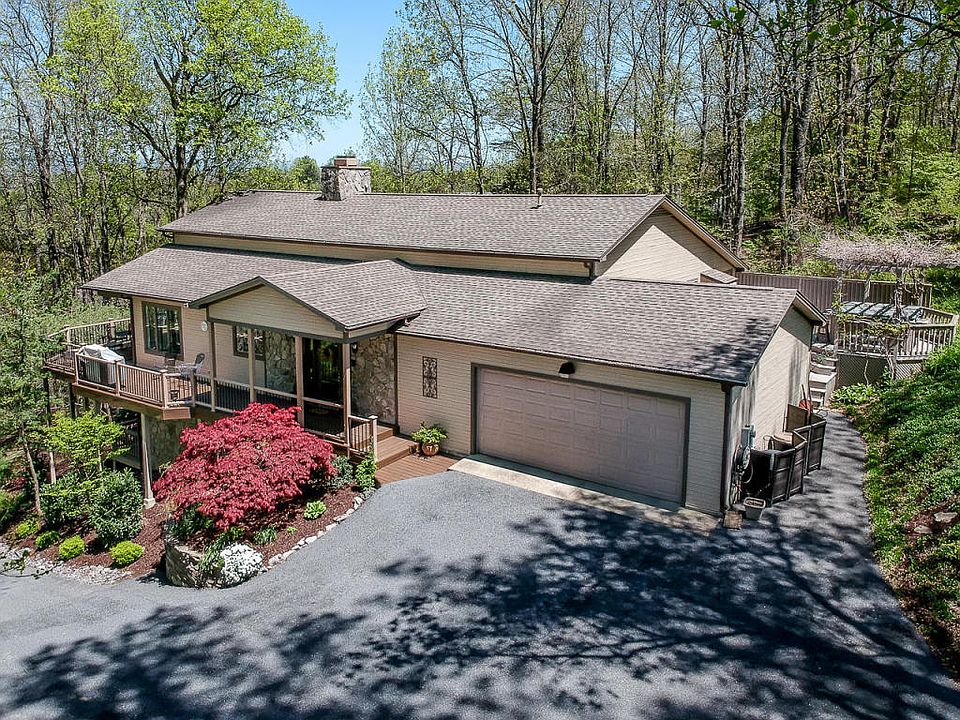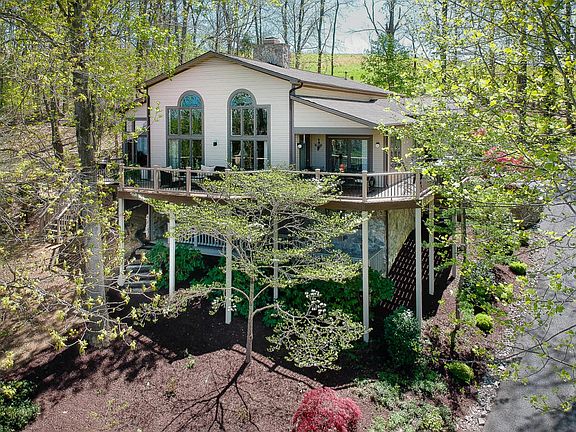 Offering spectacular mountain views, this 4BR, 3BA home is located just outside the Lexington City limits and is move-in ready. Home offers bright living room with vaulted ceilings and fireplace, dining room, open kitchen with stainless appliances and sunroom. First floor master suite with newly remodeled spacious master bath including stand in tile shower, jacuzzi tub and double vanities. Lower level hosts guest rooms and rec room with built-ins and wet bar. Fantastic outdoor living space on the brand new wrap around deck, lower level deck and back patio with hot tub. Wonderfully landscaped throughout.