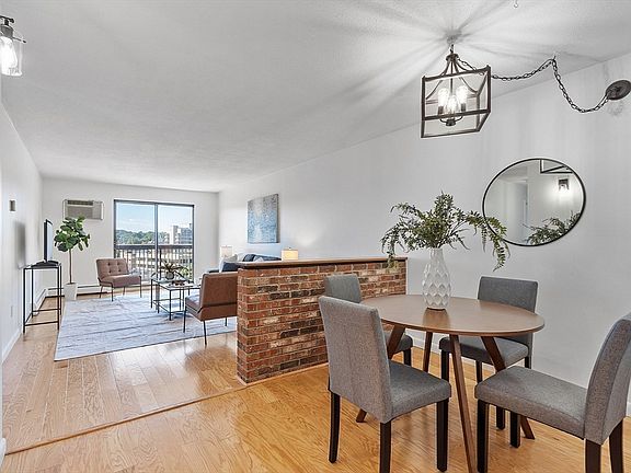 Welcome to the condos at Newtown Gateway. This well-maintained association is a breath of fresh air compared to other associations. Unit 83 is one of the LARGER units available and recent updates include the bathrooms, kitchen, wood flooring, carpet in bedrooms, light fixtures and appliances. There is also a separate storage unit on the 1st floor as well as the laundry facilities. The unit comes with 2 indoor assigned garage parking spots from there you can take the recently replaced elevators up to the 8th floor. The unit faces Williams St and you get expansive views that include the Boston skyline. The association comprises of 2 buildings that share an inground pool which is a great place to cool off during the hot summer days. Across the street is the bus stop for the express bus to Boston. Cat friendly. Heat and hot water included in condo fee.