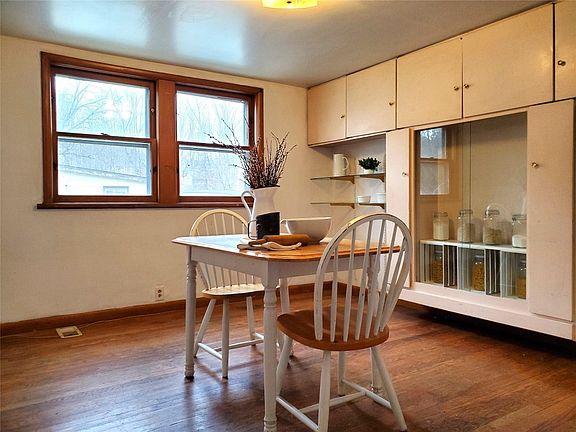 Affordable and convenient home just 12 miles from Ithaca! Easy access to jobs, shopping, and nearby adventures like Buttermilk Falls. An oversized 2-car garage offers ample workspace and storage while the house features 2 enclosed porches with lots of windows and plenty of space to slip in and out of winter gear. A secondary heat source could be added in office (chimney in place). The dining room has hardwood floors, built in cabinets, and a pass through to the living room. Upstairs includes 3 bdrms, a bonus room, and a half bath. Stepping down into the primary bdrm you will find 2 separate rooms; one lined with shelves and the second containing a closet. There is a smaller bdrm across the landing and an entry to the 12 X 9 bonus room. This room is the perfect place for crafts, games, or displaying your favorite collections! Access to the 3rd bdrm and half bath are through the bonus room. Set on .41 acres, this property has incredible space inside and out!