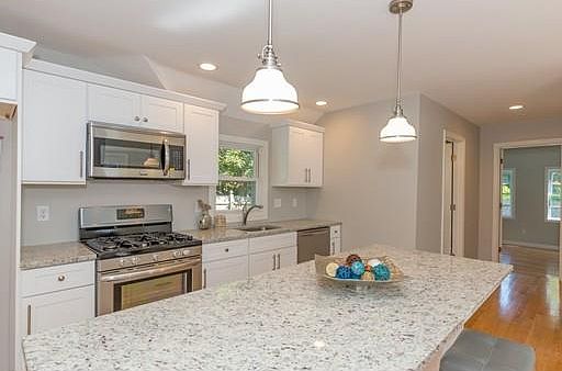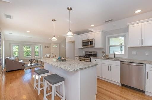 This gorgeous home has been completely renovated inside and out and has a new modern open floor plan. The great room is the focal point of this home- with it's gleaming hardwood floors and abundant natural light, it flows graciously into the brand new kitchen. The brand new kitchen features granite counters, stainless appliances and an oversized island. Master suite with hardwood floors has plenty of closet space and gorgeous new bathroom. Two additional bedrooms and a second fully renovated bath add to the appeal of this home. First floor also features a mudroom. Outside you'll find a lovely flat yard which is fully fenced in. Walk to Edwards Beach and playground in less than 5 minutes. New HVAC, new HW heater, new roof, updated plumbing and electrical. Nothing to do but move in. Quick closing possible.