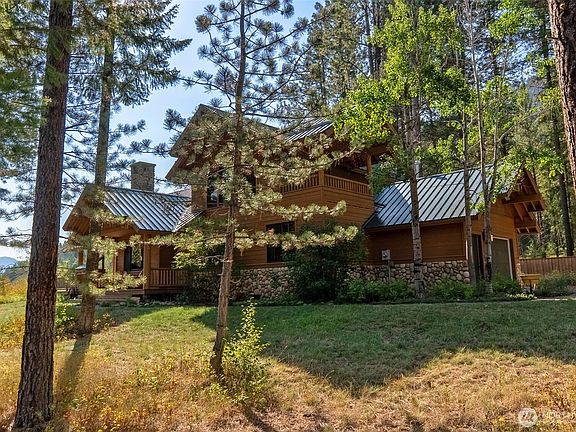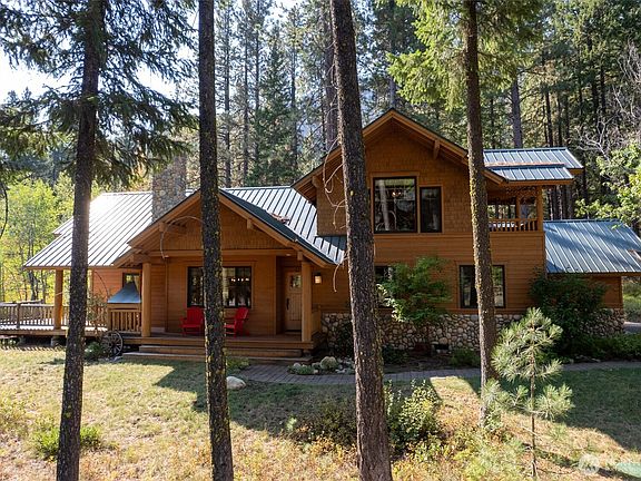 Custom 3BD/2.5 BA home in Mazama’s premier Wilson Ranch, set on 1.09 acres bordering USFS land for privacy and direct trail access. Northwest lodge-style design with vaulted ceilings, warm wood finishes, and abundant windows that frame mountain and forest views. Open living with stone fireplace, spacious kitchen, and seamless indoor-outdoor flow. Primary ensuite upstairs offers private balcony and large bathroom. Community amenities include a 4-acre lake for swimming, fishing, and paddle boarding, plus pool and hot tub. Offered fully furnished, this rare nightly rental–zoned home blends comfort, recreation, and investment potential in the heart of Mazama’s most popular neighborhood.