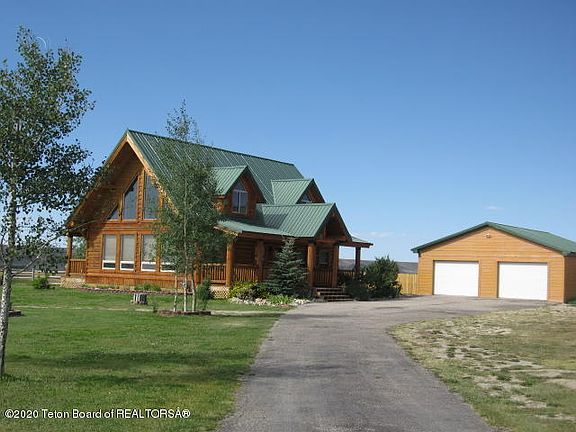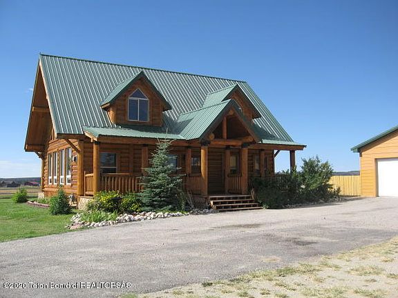 Great one and half story log home. Fantastic views of Wind River Range.. Main floor is a great room with natural gas free standingstove in great room wood floors, breakfast bar. All kitchen appliances plus washer dryer stay Large pantry closet.Two nice size bedrooms and full bath on the main floor. Upstairs is a loft area, master bedroom, nice size bath balcony off the master to enjoy the sunsets. Deck off the side of the house. Over-size detached garage with a heater lot of room for a work bench. Also on the property is a Great shop or horse barn. Property is fenced with irrigation. Right off a county maintained road.