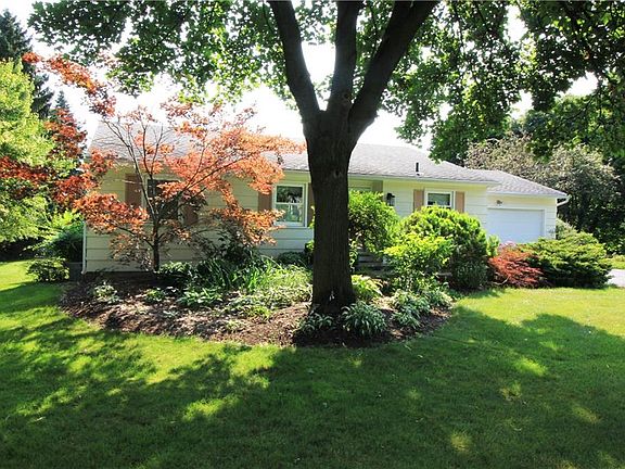Super Sharp 3 bedroom 1.5 bath ranch on a beautifully landscaped lot. Updated kitchen and bath. Gleaming hardwood floors. Full walkout lower level to fenced area of the rear yard. Deck off of the dining room offers privacy and wonderful views of the yard. All kitchen and laundry appliances remain. The was set up for wheelchair access by current owner with a ramp in the garage and a chairlift at the basement stairs. The walkout lower level is nicely finished with 3 separate living areas, a half bath, storage room and a laundry/craft room. Serviced by Fairport electric. A great house in a wonderful neighborhood with so many conveniences nearby. Truly a pleasure to view.