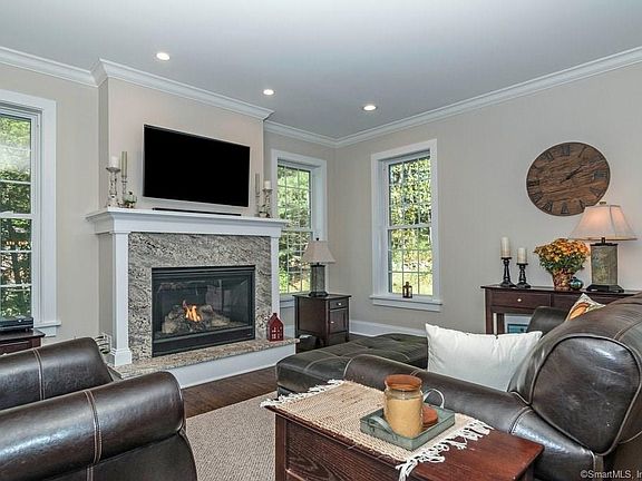 Discover this Newer Construction 3/4BR Colonial located on a quiet cul-de-sac set back from the road in a desirable Trumbull neighborhood. This 2017 built home features all of today's top features, 9ft ceilings, extensive raised panel moldings, HWD floors throughout, open floorplan between the Dining Rm, Kitchen and Family Rm great for entertaining. A gorgeous Kitchen including white shaker cabinets, Center Island w/breakfast bar, granite counter tops, subway tile backsplash, SS gas cooktop & double wall ovens all open to the Family Rm highlighted by a gas fireplace. Off the kitchen are sliders to the Trex deck and level rear yard. The upper floor features a spacious MBR Suite with walk-in closet and luxurious bath w/tile shower, soaking tub & double sinks w/marble counters. Additionally there are 2 family BR's and the Office/4th BR with a hall bath w/double sinks and tile shower/tub. The laundry Rm is also conveniently located on this floor. The large Playroom with an additional 675 SF in the walkout L/L and includes the 2nd half bath for a total of 3200SF of finished living space. This newer home also features, walk-up attic for future expansion, irrigation system, tankless HW heater, oversize garage doors, natural gas heating & C/A, maintenance free vinyl siding and synthetic deck materials, modern light fixtures and again, end of cul-de-sac location!