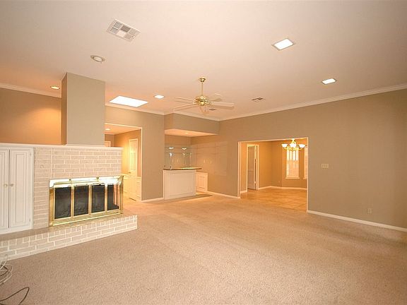 Ready for your touches! 3br/2ba North Waco home with fresh paint, large open living area, raised ceilings, wood burning fireplace, built-ins, skylights, enclosed sun room, wet bar, modern kitchen with GE Profile stainless oven & microwave, LG stainless fridge (included), LG stainless washer/dryer with stands (included), stone back-splash, jetted tub, security system, sprinkler system, extended back patio, fenced yard, RV/Boat pad, storage shed, side entry garage and corner lot. China Spring schools.