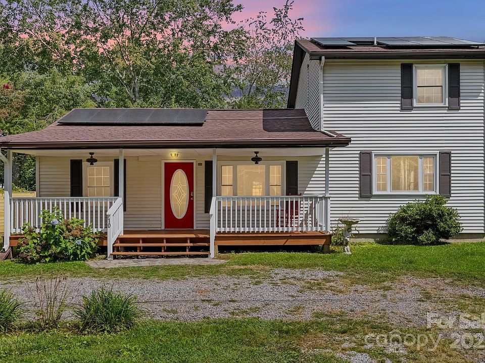Close to everything Black Mountain has to offer, this home is only a three-minute drive or nine-minute bike ride to downtown. Built in 1937 with an addition in the 1980s, it offers 3 bedrooms, 2 baths, and 1,506 square feet. The primary suite, kitchen, living room, and laundry are all on the main level, with two more bedrooms and a full bath upstairs. Solar panels keep utility costs low, adding value and sustainability, while outdoor spaces include a front porch perfect for rocking chairs, a covered back deck, a fire pit, and a partially fenced yard. The home also has a history as an Airbnb, giving buyers the option of full-time living, a vacation getaway, or rental income. Just 20 minutes from Asheville and minutes from hiking trails, local dining, and the Blue Ridge Parkway, this home delivers incredible value and convenience in a highly sought-after Black Mountain setting.