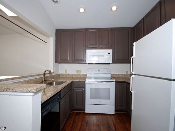 Located in the highly sought-after Wood Duck Pond section of The Hills, this freshly painted throughout, move-in-ready, end-unit townhouse is a fantastic opportunity for homeowners and investors. Natural light enhances the beauty of this 2-BR end-unit which features exquisite premium wood-laminate floors, a vaulted ceiling in LR, 2-skylights, a slider to a private deck off the living room and a direct entry from garage into the house. The updated kitchen boasts handsome espresso cabinetry, granite countertops, and an easy flow to the DR LR with a gas fireplace and stand-alone wine cooler fridge, inc as-is. Amenities include a stylish main bath updated in neutral hues with tile floor and glass shower door, thermal windows, a storm door, and newer furnace. Includes Home Owner Warranty. The pastoral community lifestyle of the Hills offers Club House, pool, pickle ball and tennis courts, BB courts, walking jogging cycling paths, and more. Its prime location provides easy access to parks, local golf courses, shopping, great restaurants, medical facilities, library, and major highways and transportation. This must-see unit won't last.