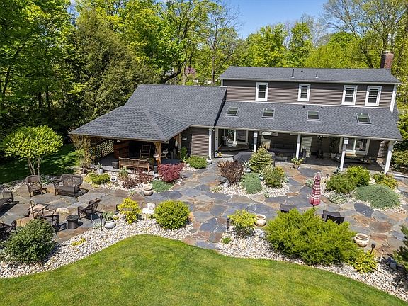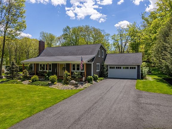 This incredible home is waiting for new buyers to enjoy relaxing and entertaining on site. The private rear yard boasts impeccable patio stone work and beds, covered patio and deck with trex decking, along with wired sound and outside televisions and a built-in fire pit. The first-floor primary suite is suited with its own sliding glass door, just steps away from the spectacular fish pond, creating total paradise. Additionally, the custom-built kitchen, magnificent full bathrooms with heated floors, guest half bath, open custom designed staircase and 3 beautiful second floor bedrooms make this the perfect home. The 500 gallon in ground seller owned propane tank allows future buyers to buy propane from whoever they wish. Home also has a 2-car garage with a beautiful epoxy floor. This incredible property is walking distance to the Belchertown Green - perfect for hosting family and friends for the annual Belchertown Fair.