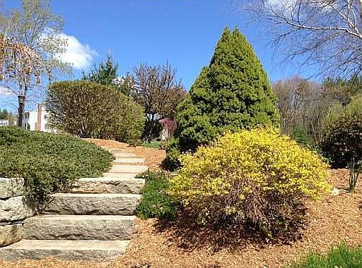 Location, Location, Location... This lovely Contemporary Colonial has much to offer, boasting a sun drenched living room, formal dining room, beautiful kitchen with cherry cabinets and granite counter tops, 4 bedrooms, 2.5 baths, a finished basement with a family room and exercise area. The outside of the house is just stunning, beautiful flowering trees line the property, and perennials adorn trees, walk-ways and the brick patio and deck and a 2 car garage. What a great place to call home!