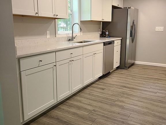 Charming 3-br ranch close to lake beach. Exterior/interior completely renovated in 2021 including roof, siding, windows, doors, insulation, electrical, plumbing, etc. The front door leads into a cozy breakfast nook open to the kitchen with quartz countertops, soft-close cabinets, and stainless steel appliances. Enter into the spacious living room with vaulted ceiling. The sliding door leads to flat back yard with patio and shed. Three bedrooms and a full-ba with laundry hook-ups branches off the hallway from kitchen. Structure sets on concrete piers with closed-in crawl space for storage. Energy efficient ductless mini-split system for heating and cooling. Showings start at Open House, Sun, 3/19, 12:00 pm. *Some images were captured prior to occupancy...more updated images coming soon.