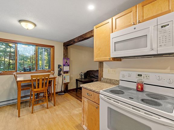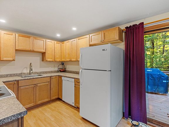 Three-bedroom, one bath split level ranch provides good living space in a wonderful location! Recently renovated kitchen boasts maple cabinets, laminate countertops and laminate floors, eat-in dining area and access to large back deck from glass sliding doors. Spacious living room features beams and elegant rod iron railings, adding a touch of personality and warmth to the space. Primary bedroom and additional bedroom on the first floor and full bath. Another bonus bedroom on the basement level with large family room, bar area, woodstove and walk out to the side driveway. Amazing opportunity to use for additional living space or for storage. Outside, you'll be delighted with the well-sized yard, perfect for recreation, gardening, or simply enjoying the fresh air. And let's not forget the large back deck, tucked away in a private setting, offering an ideal spot for relaxation and outdoor gatherings. Just minutes away from Route 93 and shopping, yet it offers the tranquility of a rural setting. Some updates include, appliances, kitchen renovation, carpet, flooring, deck, well water line, pressure tank and pump. Don't miss this opportunity! Back on the market because the buyer could not get financing, nothing to do with the house or seller.