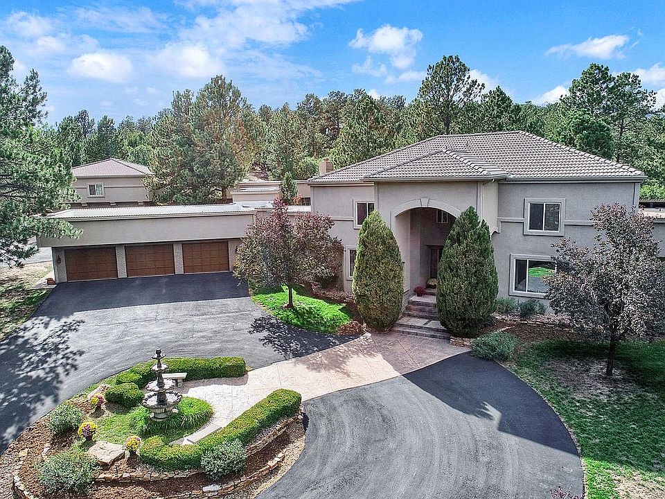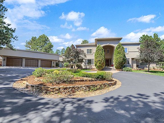 This stunning residence is the rare opportunity to own a resort style home with 6BR, 7 BA, 6 CA, indoor swimming pool, putting green & basketball court on a private 2.3 acre treed sanctuary in Northwest Co Springs. An entertainer's delight, the dramatic foyer with sweeping staircase, living and dining rooms are beautifully appointed to greet your guests. The gourmet kitchen offers granite slab counters, center island and dining nook. Unwind in the inviting family room accented with rich wood paneling and gas fireplace. The spacious main level master retreat features a luxurious 5-piece bath with steam shower, jetted tub & gas fireplace. His and Her studies are ideal for telecommuting or home-based businesses. The upper level provides 2 suites with attached bathrooms, plus 2 additional bedrooms. The breezeway leads to a sprawling entertainment room - perfect for billiards, gaming, dance floor, etc. with wet bar and overlooks the indoor pool. Sure to be the most popular spot in the home, the pool boasts an adjoining waterfall jacuzzi and slide. Sauna & outdoor hot tub are just steps away. The apartment with separate entrance is ideal for multi-generational living, rental or office. You will be captivated by the out-door living spaces as you host a BBQ in one of two outdoor kitchens, relax in the pergola or on one of the flag stone patios & enjoy the sound of the waterfall. This one of a kind property has hosted holiday & state champ football celebrations, epic basketball games, putting tournaments and pool parties. Enjoy the serenity of towering pines and wildlife, yet the convenience of being less than 5 min to I-25, with easy access to award winning D-20 schools, shopping & dining. Surrounded by natural splendors and incredible amenities, your sanctuary awaits!