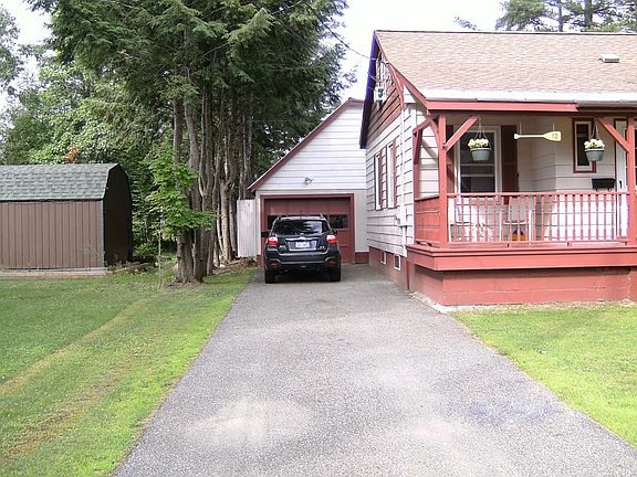 Spacious Cape Cod in lovely neighborhood setting with private backyard surrounded by trees, fire pit, storage shed and woodshed. Home has beautiful hardwood floors, new bathroom with walk-in shower and tons of built in's for great storage. One stall detached garage with 10 x 20 workshop and a studio apartment above the garage with kitchenette, bath and new laminate floors.