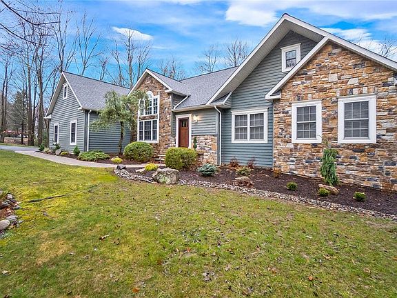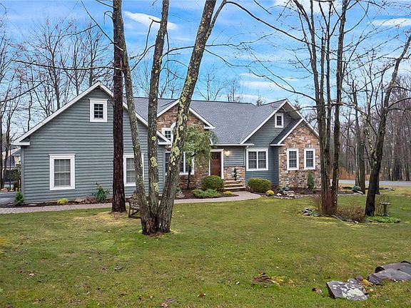 This stunning 5 BR, 3 bath Contemporary home nestled in Split Rock is a haven of modern luxury. Step inside to discover the 1st floor's exquisite features, including a spacious MBR Suite, a luminous LR adorned with an impressive cathedral ceiling that seamlessly merges with the custom kitchen. Admire the elegance of the wall stone FP, flanked by 2 sets of French doors inviting you to the expansive deck, perfect for soaking in the serene surroundings. The kitchen is a chef's dream with granite CTs, a center island, abundant cabinetry, a stylish tile backsplash, a pantry, and captivating views. Convenience meets elegance with a 1st floor laundry. Descend to the LL where a sprawling FR awaits, boasting another striking stone FP and French doors leading to a patio. Located mere minutes from route 903 and I-476, ensuring easy access for commutes and to nearby attractions such as Big Boulder and Hickory Run Park/Boulder field. Don't miss out!