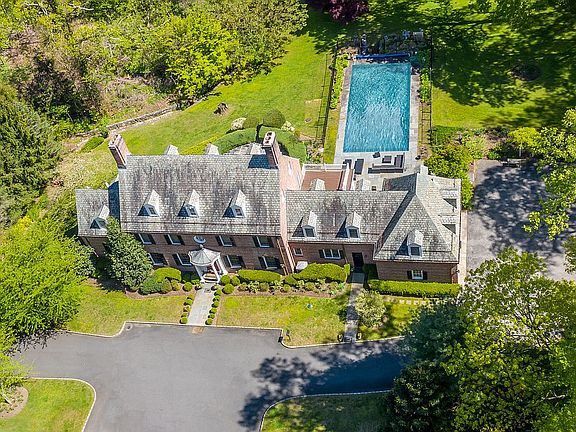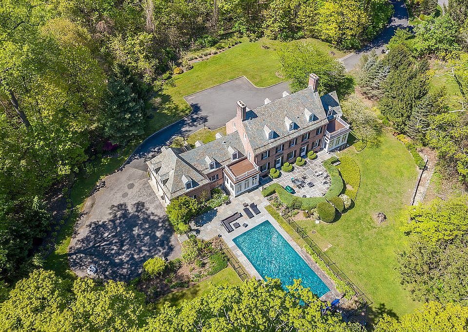 Privacy/convenience abounds with his beautifully maintained Classic Georgian Colonial nestled on 1.5 private acres surrounded by 20 acres of protected open space with in-ground heated pool.Gourmet MEIK w/top of the line appliances, marble counter tops, a glass enclosed breakfast room that opens to a private slate terrace with views of the pool and gardens. Living room w/fireplace, library w/fireplace, dining room w/fireplace, sun-room w/French doors leading to patio/pool. Tranquil Master Suite offers a sitting room, spa marble bath w/jetted tub, WIC, a private terrace overlooking mature planting plus 3 additional en-suite family bedrooms/office/laundry.Third level has 2 bedrooms/sitting room/full bath.Fabulous finished lower level w/floor to ceiling stone fireplace, exercise room, full bath, laundry, steps leading to pool/patio, full house generator. Located on a private country lane 35 minutes from NYC w/additional adjacent 1.8 acre lot available.