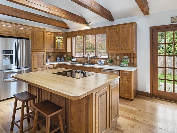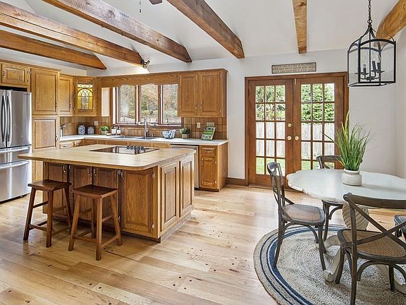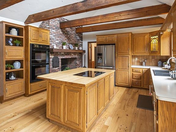 - Kit Dscrp: Dining Area, Flooring - Hardwood, Kitchen Island, Fireplace, Exterior Access
