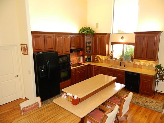 Absolute SINGLE LEVEL home on a level PRIVATE lot that backs to the PRESCOTT NATIONAL FOREST. Original Owner, quality built 2,446 SF finished in 2003. Great room with 16' vaulted ceiling & large PICTURE WINDOWS. Enjoy the gas fireplace, 3/4' oak hardwood, 13 speaker sound system & built in desk & bookcases. Kitchen with Jenn-Air, cherry cabs, 6' CAESARSTONE QUARTZ island counter, tile backsplash & a mountain view from the kitchen sink. Master bath with jetted tub & 2 sided gas FP. Large side entry 2 car garage with parking area for small RV. Low maintenance natural landscaping including MATURE OAKS, PINES, ASH, ASPENS & a cool lawn area. Rear patio looks out over the NATIONAL FOREST & surrounding mountains. Peaceful cul-de-sac location with a community pool only a few miles from town.