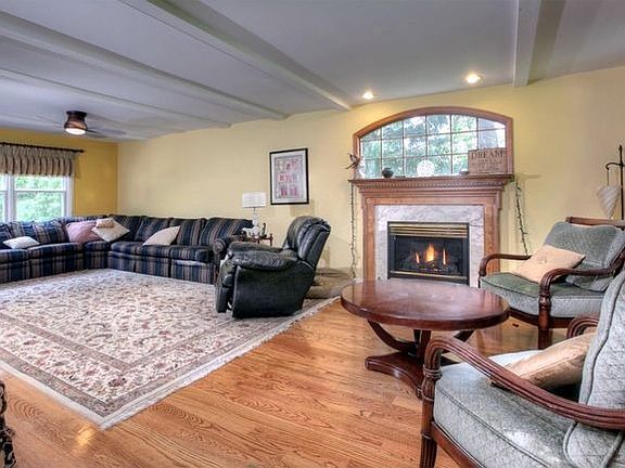 Updates & renovations in this 4 Bed. colonial will blow you away! Hardwood floors thruout 2nd floor just added! Lg.Gourmet Kitchen, SS Appl. natural cherry cabinets & center island, corian counters 2 Gas FP's. Living Room FP added with distinctive custom window above. Kit. opens to sunken conservatory/sep. eating area w/vaulted knotty pine ceiling leading to rear deck. Updated master bath. HVAC 2009. Newer Pella windows. Rear Paver Patio for outdoor dining.Public Water. Blue Ribbon schools.