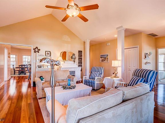 Beautiful, custom built home with huge 3 car garage in the rear make this home very unique. Many upgrades such as an oversized arched entry door, eucalyptus wood flooring, large beautiful kitchen with granite counters and lighted cabinets, stainless appliances; breakfast nook with tray ceiling and accent lighting. The living room has a cathedral ceiling and a gas fireplace for those chilly evenings. The dining room has a tray ceiling and french door to the wrap-around screened in porch great for summer meals. Spacious master bedroom & large walk in closet with custom closet organizer and a master bath with tons of cabinets & counter space plus an oversized walk in tiled shower. 9' ceilings make this home feel very airy and spacious. The baths are tiled, as is the laundry room with front load washer & shelving. The home is beautifully landscaped with sod and sprinklers. The rear 3 car garage is a dream come true with a 10' workbench, 5' potting bench and epoxy floor for easy clean up. The bonus is the 10 x 18 free standing fitness room with exercise equipment (included) at the rear of the house. Custom vinyl outside shower with trex flooring & changing area. High efficiency heating system, central air, floored attic for storage. Great neighborhood with city water/sewer and natural gas. This home is immaculate and a true GEM! (Please note that the MLS mapping system has placed it incorrectly and it is being worked on. Property is located off of W. Shellbay Avenue)